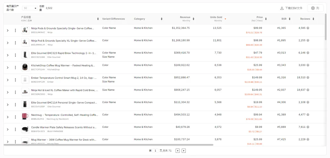 美国站“Home & Kitchen”类目最高排名1316.预估月销量12360件。