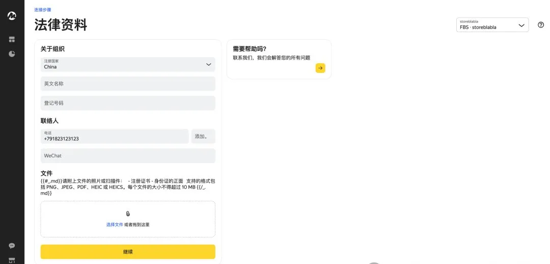 step12:填写国家,公司名称,公司信用注册编号,联系方式,微信号
