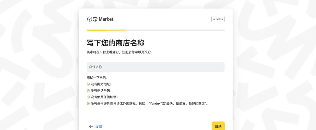 step5:输入你的商店名称,Yandex买家将通过这个名称看到你的商店