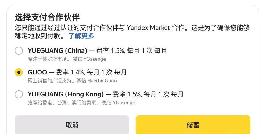 step14:选择支付合作伙伴(guoo目前的手续费低,建议优先选择,其它的收款平台后边应该也会陆续开通)