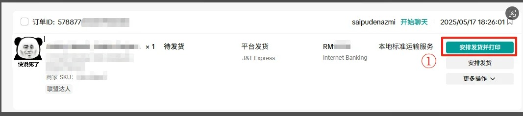 一、出单后在TikTok卖家中心,点击安排打印并发货