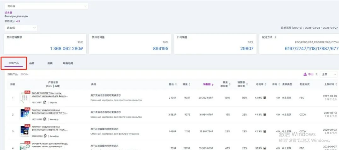 选品首要任务是把握平台整体动向。建议定期研究Ozon官网的“Рейтинги”(评级)和“Хиты продаж”(畅销产品)排行榜,快速掌握当前热销商品。同时,密切关注平台大促活动(如9月生日大促、双11、双12等),提前1-2个月布局热门品类。此外,善用Seerfar、BCS等第三方分析工具,可以深入分析品类竞争度、价格分布和销量趋势,实现数据化选品,告别凭感觉决策。