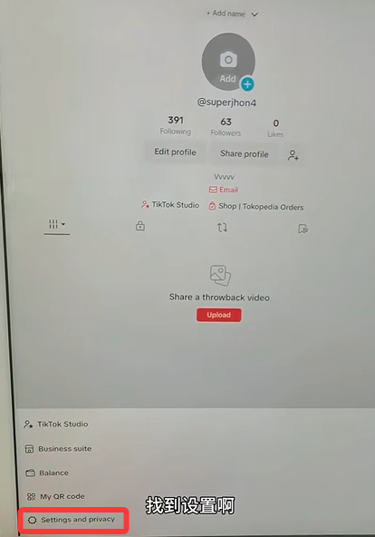 打开TikTok应用后,点击右下角的“我”(Profile)图标进入个人主页,随后点击右上角的“三个点”或“≡”图标(部分版本为齿轮图标),进入“设置和隐私”(Settings and Privacy)页面。