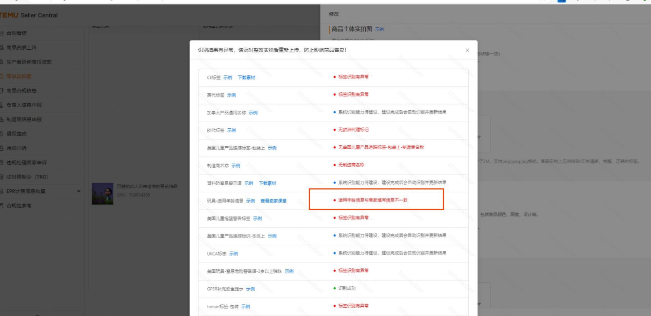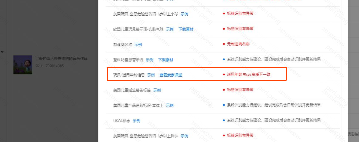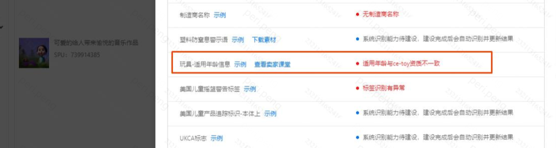 二、识别状态为“适用年龄信息有误”或“适用年龄与ce-toy资质不一致”或“适用年龄与cpc资质不一致”