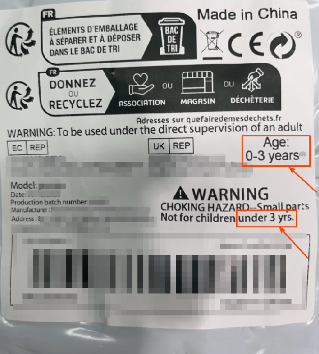 信息不清晰:拍摄的标签实拍图模糊或反光,导致系统无法识别到适用年龄信息。