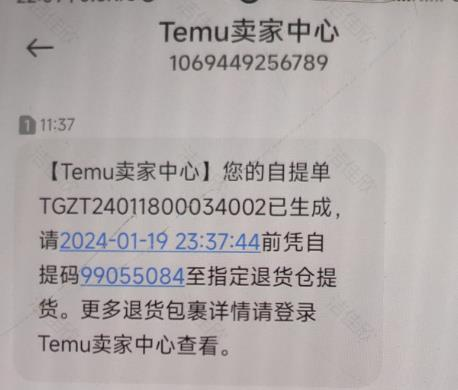 前往仓库自提前,需要提前联系仓库进行预约;自提码、有效自提时间等信息以短信和卖家中心-消息提醒方式通知,也可前往TEMU卖家中心-库存管理-退货包裹明细-自提单管理页面查看。