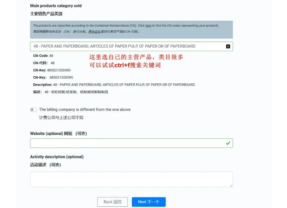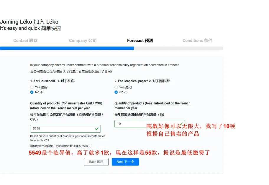 第四步:根据自己的经营情况填写进入法国市场的产品重量