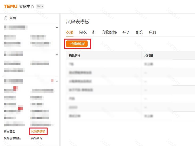 店铺首页【商品管理】-【尺码表模板】模块可以看到创建的模板,也可在该模板直接点击【创建模板】进行创建