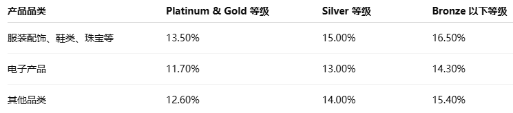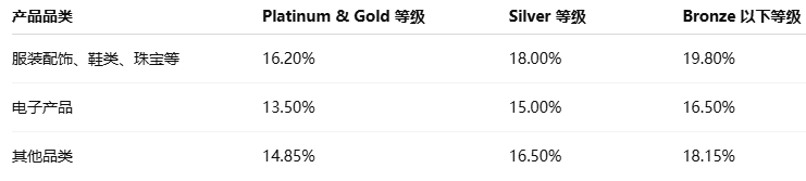 销售佣金:Wish 根据不同的产品品类和卖家等级(Wish Standards)收取佣金,佣金比例从 5% 到 25% 不等。