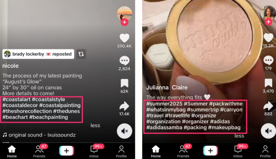 TikTok标签是前面带有 “#”符号的关键词或短语,通常在视频标题中,有助于对平台上的内容进行分类。