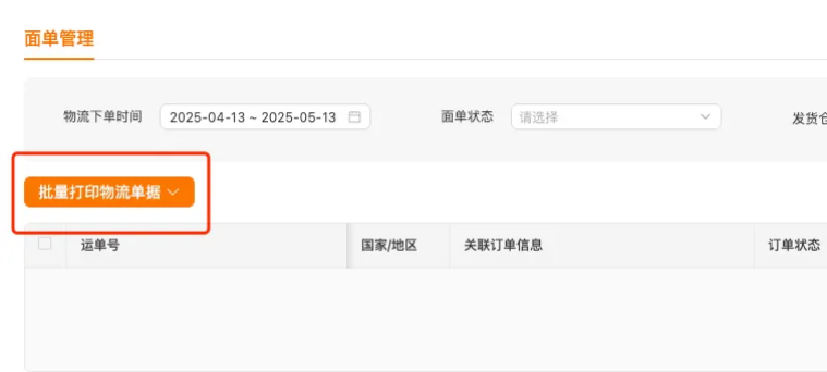 打印面单路径:【配送管理】→【面单管理】→【面单管理】→【批量打印物流单据】(链接:https://agentseller-us.temu.com/mmsos/waybill.html)
