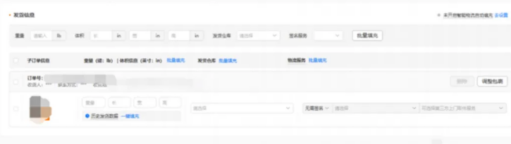 2、进入【在线下单】页面后, 填写重量、长、 宽、高、发货仓库、物流服务等内容:
