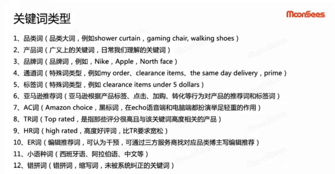 首先我们来看一看亚马逊官方是如何定义关键词的,然后再看实际运营中该如何细化分类。