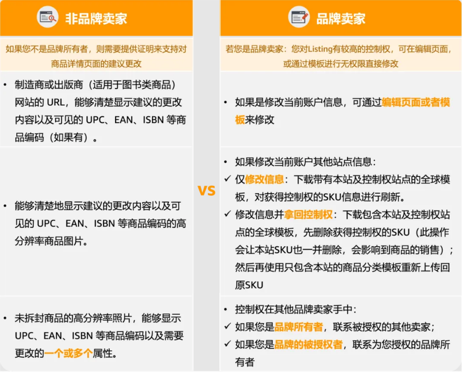 亚马逊品牌卖家修改Listing的权限和非品牌卖家有什么区别?