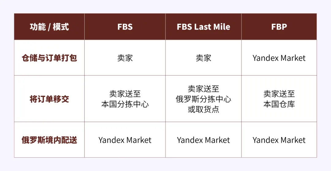 FBS 模式:卖家负责仓储与分拣,Yandex Market 负责配送