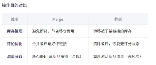 这里我们需要明确一下merge和翻新的区别,Merge是亚马逊官方允许的ASIN合并功能,用于共享库存和评论;