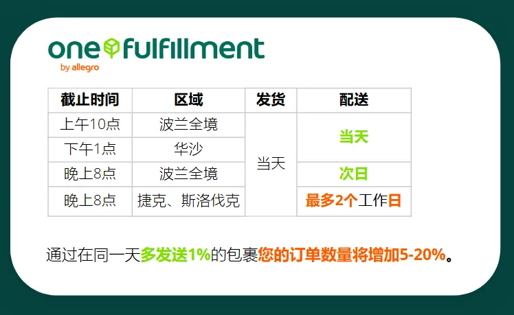 对于Allegro官方仓One Fulfillment,快速配送是一项标准!