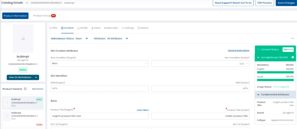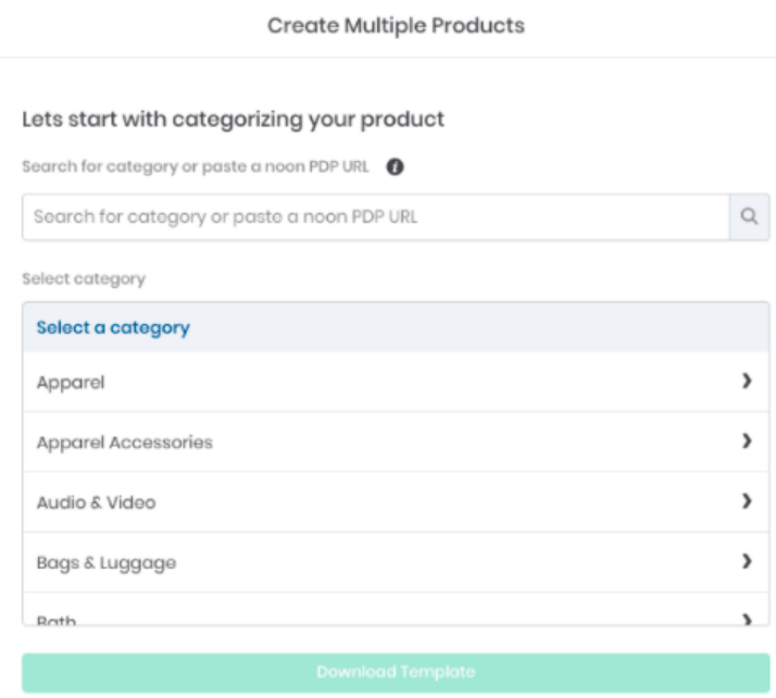 您可以手动搜索和向下钻取类别并选择完整类型,也可以粘贴noon.com中的 URL 以自动生成产品所在的类别树。