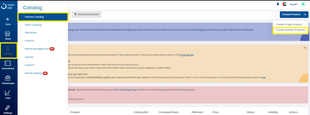 首先打开目录,然后转到“合作伙伴目录”选项卡,然后单击“创建多个产品”。