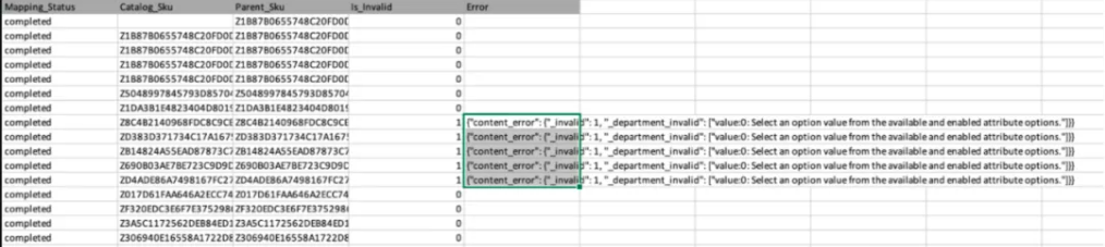 修复错误后,您可以重新上传要创建的 SKU 的同一文件,或者,如果错误仍然存在,则将生成新的错误文件。