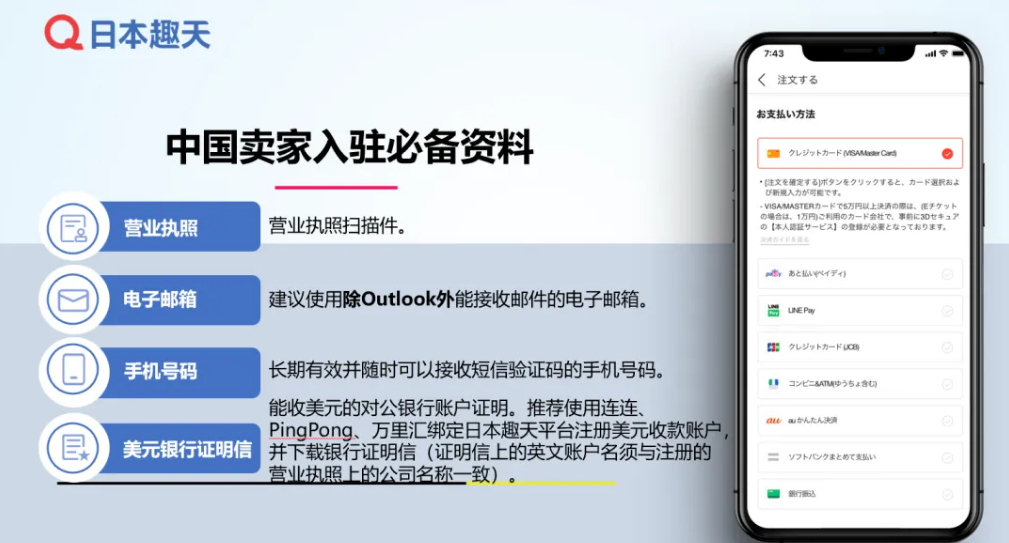 美元银行证明信:需提供能收美元的对公银行账户证明;推荐使用连连、PingPong、万里汇绑定日本趣天平台注册美元收款账户,并下载该银行证明信,且证明信上的英文账户名必须与注册营业执照上的公司名称保持一致。