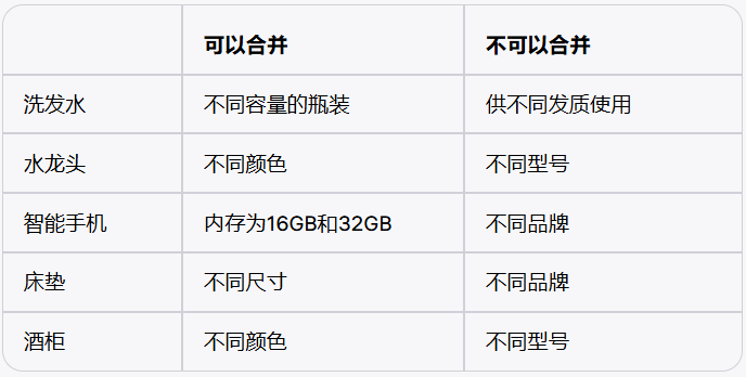 要合并的商品必须属于同一类目,并具有相同的通用属性。在填写商品信息时,如果您选择了类目,页面左侧会出现提示框,说明哪些属性是通用的,哪些是可变的。