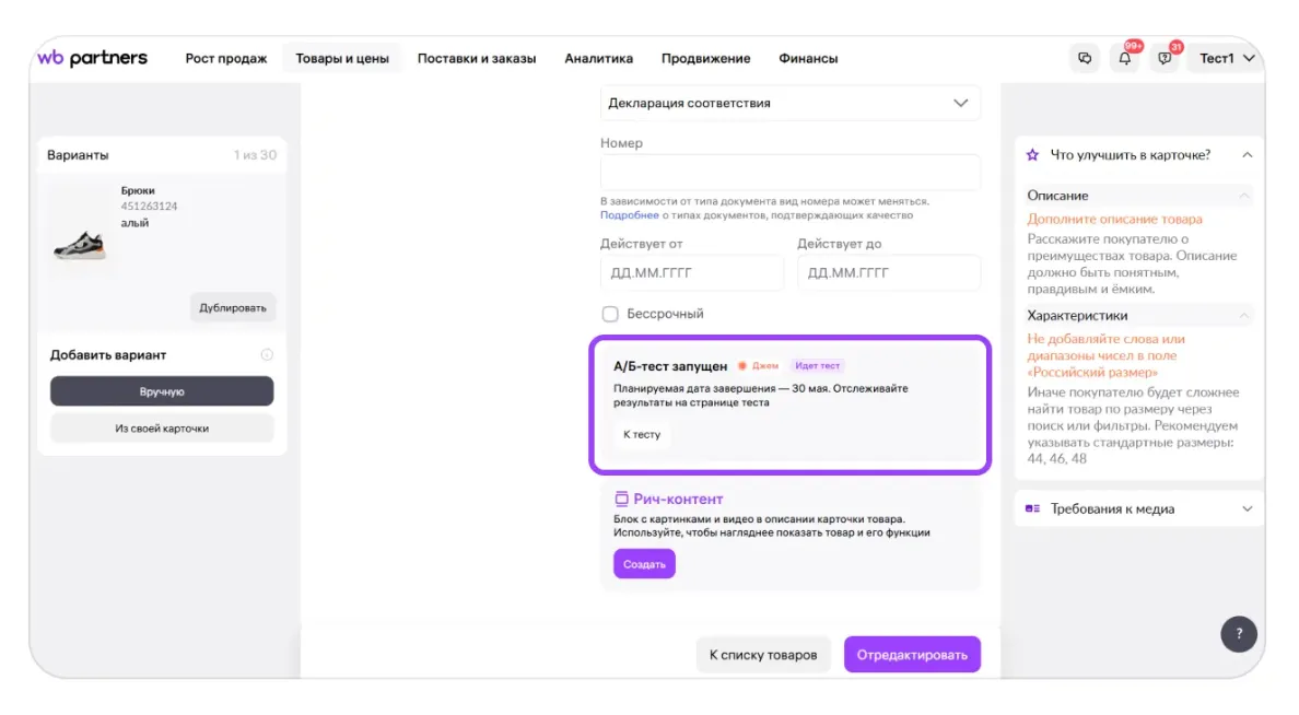 Wildberries 会在以下情况下取消测试: