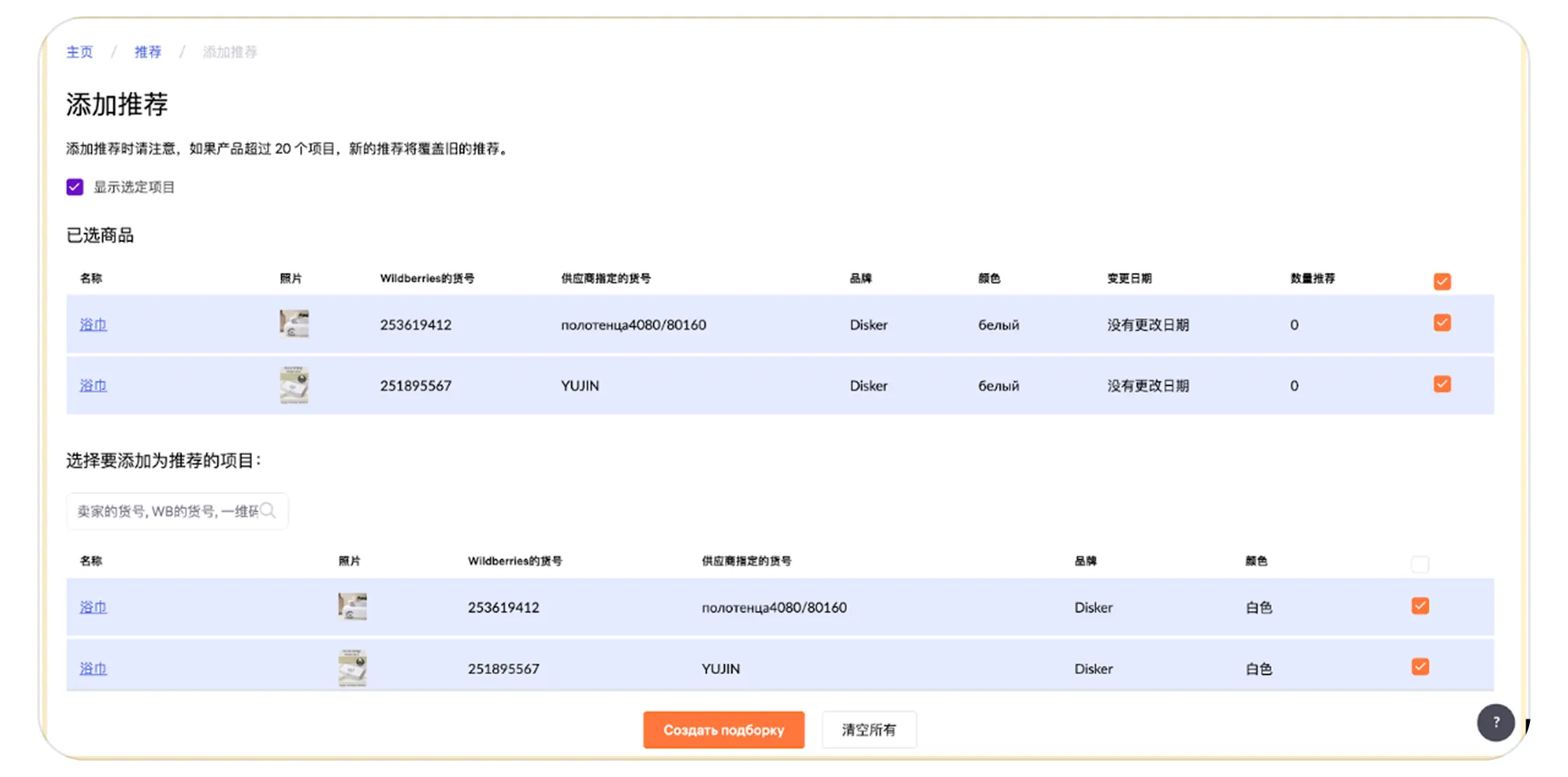 第 4 步:勾选这些商品,然后点击“创建推荐