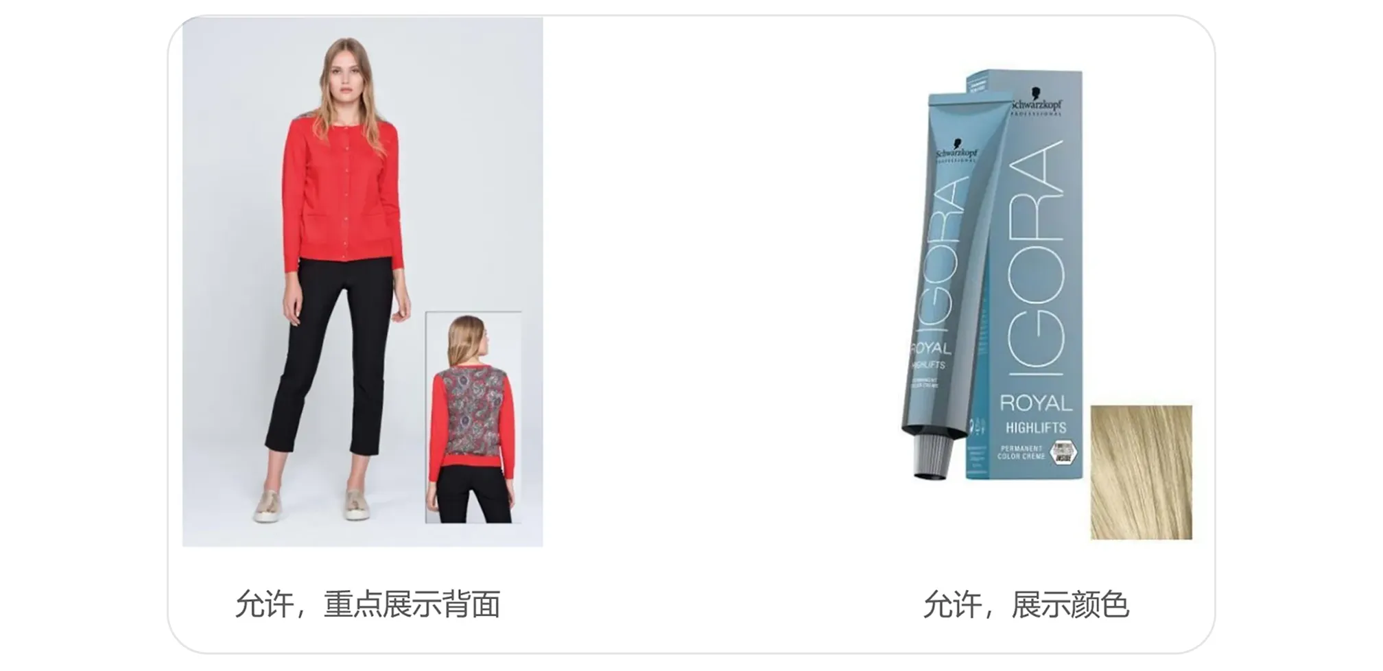 允许出现包含两个画面的图片,例如用于展示细节或背面特征: