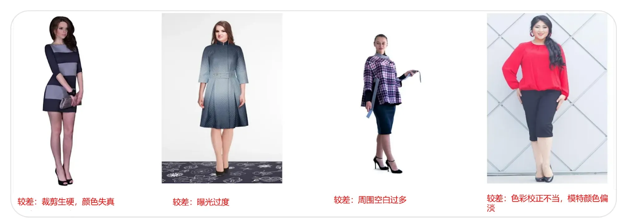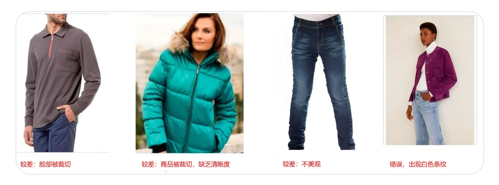 商品主体必须清晰对焦,形态与颜色呈现真实,不得出现形变或色彩失真。照片中不应包含多余的背景残留或其他无关画面。