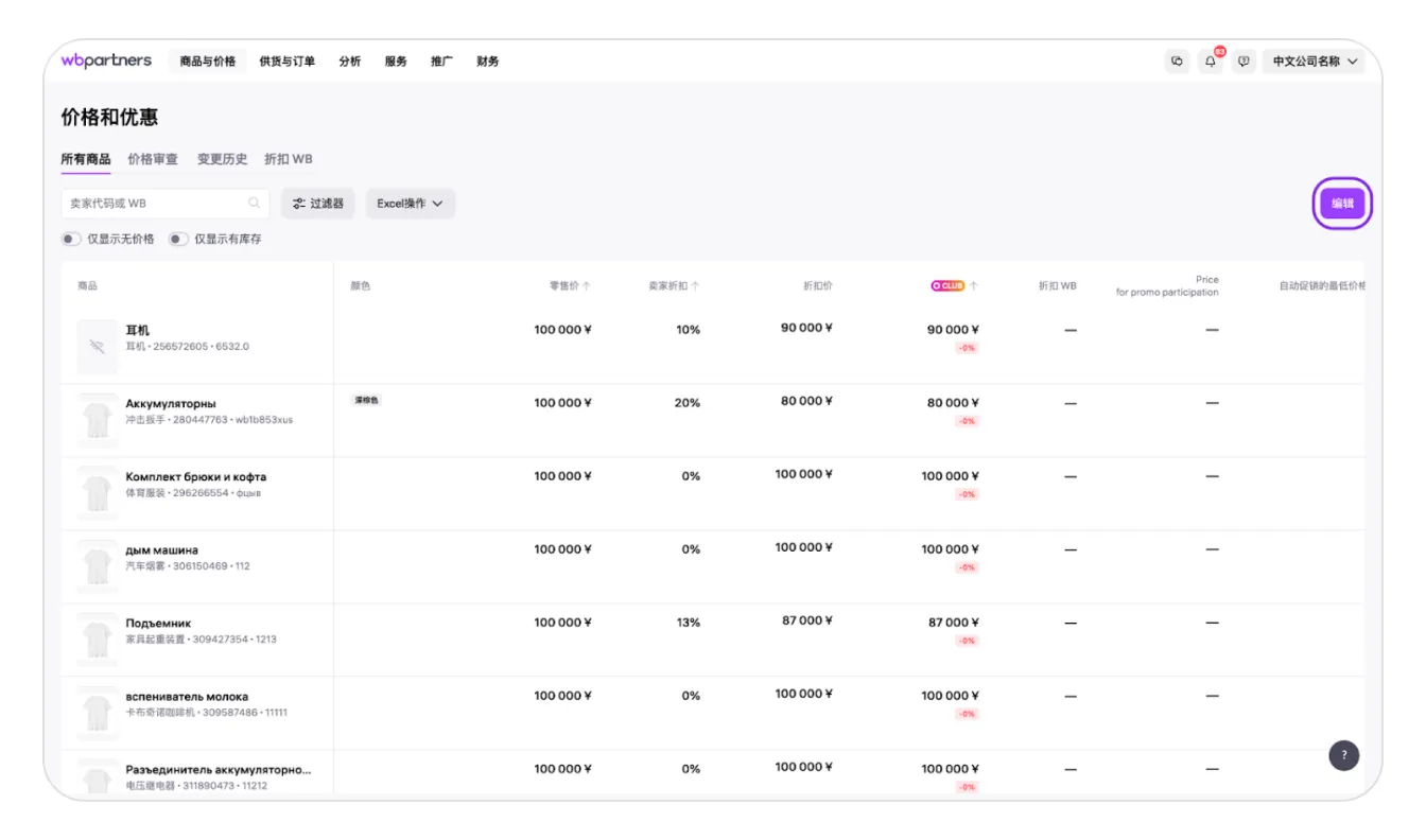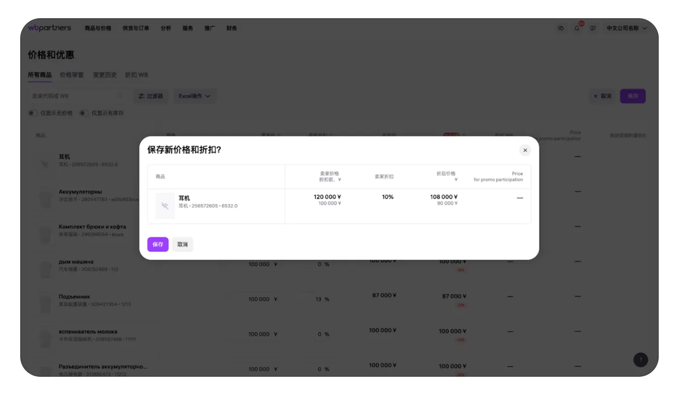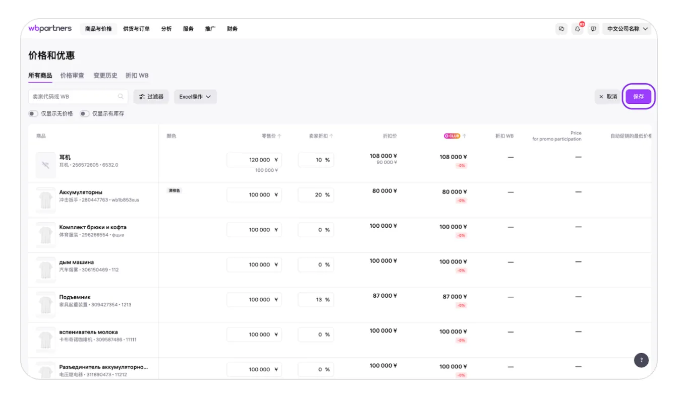 Wildberries如何手动修改商品价格优惠?