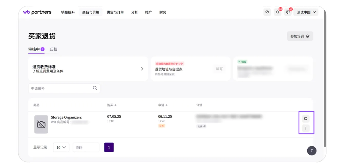 您可以进入与买家的聊天,以讨论退货细节。为此,请点击申请右侧的聊天图标。