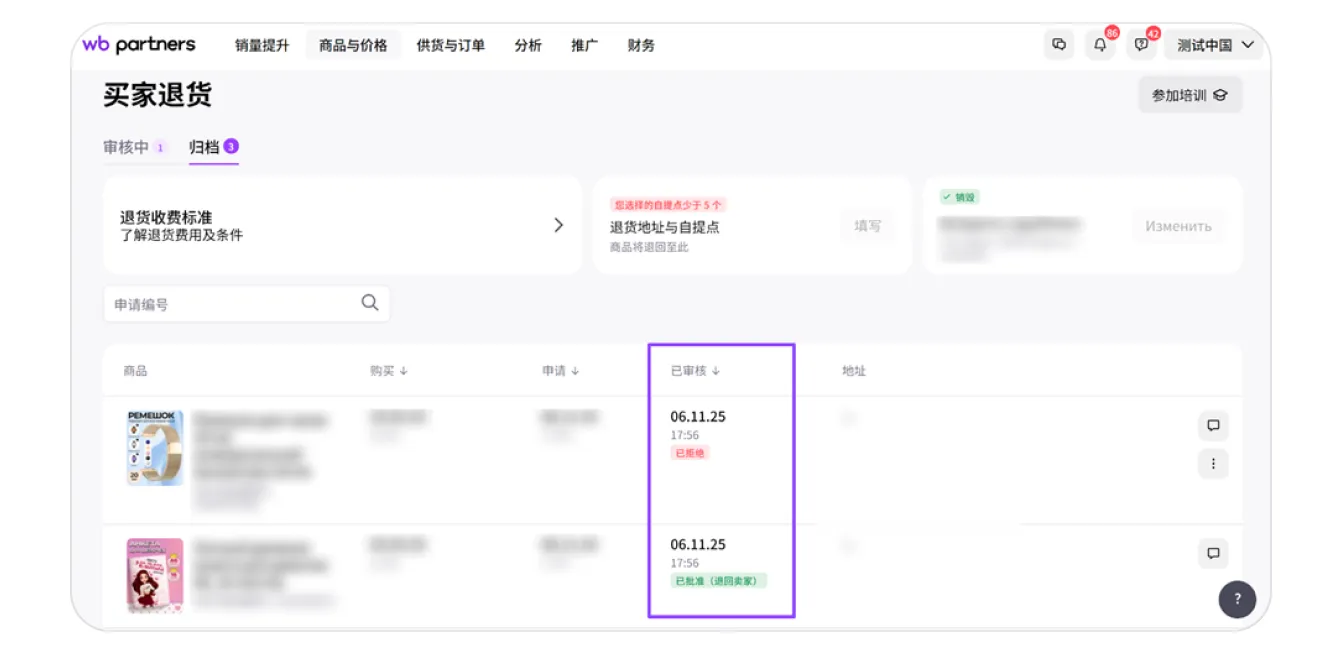 无论商品是从中国发货还是从俄罗斯仓库发货,退货申请的处理流程完全相同。