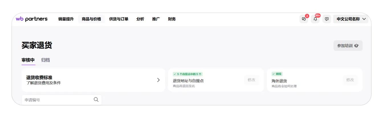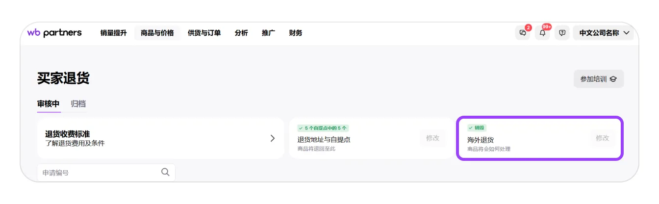 1. 进入 “商品与价格” → “买家退货”。