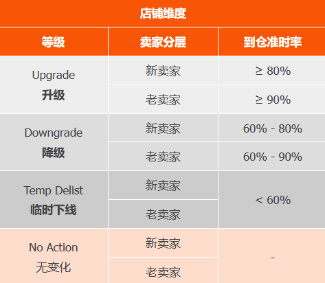 准时到仓率:新卖家 ≥ 80 % ; 老卖家 ≥ 90 %