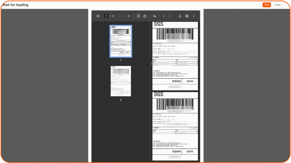 第三步:点击 Print 打印面单,按系统分配面单,拣货打包,对应贴单发货
