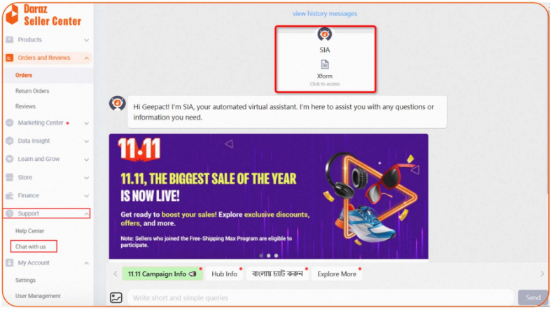 1)Setting and Support-Chat with us-Xform