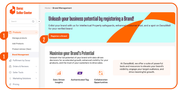 2►点击 Register a Brand 进入品申请页面。
