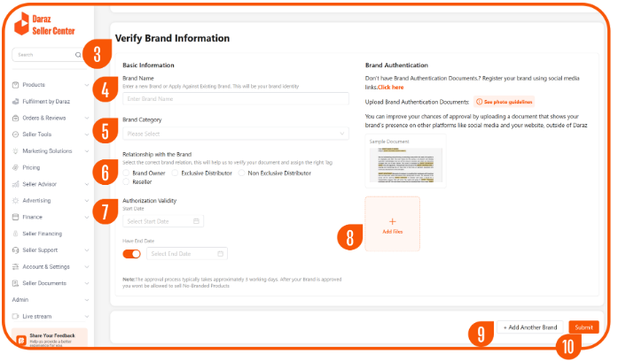 9►点击 +Add Another Brand 可以提交另一个品牌申请(不同品牌或同一品牌不同类目)