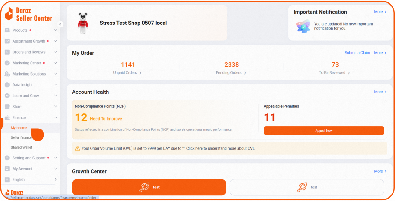 登录商家后台 > 点击左侧导航栏Finance > 下拉菜单中点击MyIncome