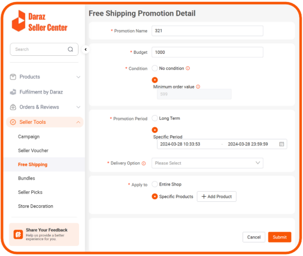 • Promotion Name 促销名称