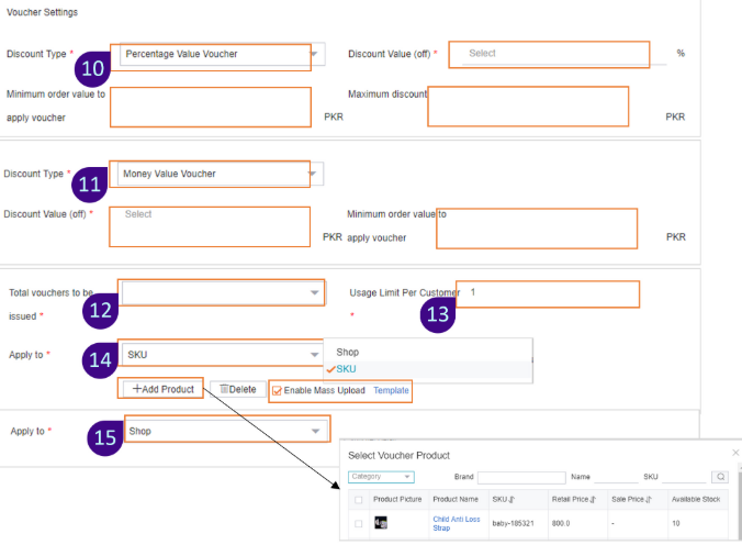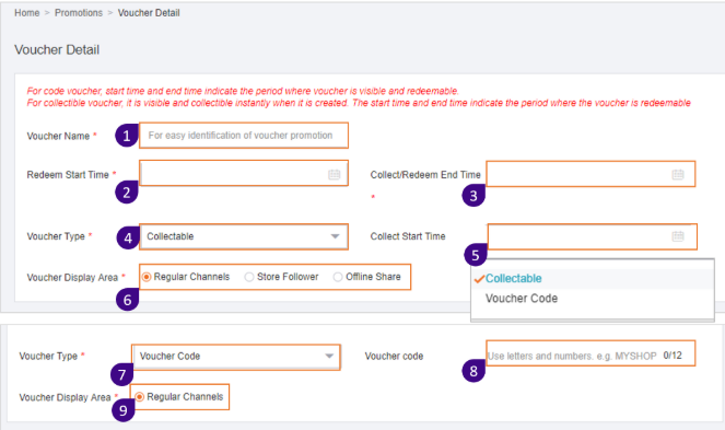 注意:Collectible Voucher & Voucher Code两类优惠券都是在同一页面进行设置