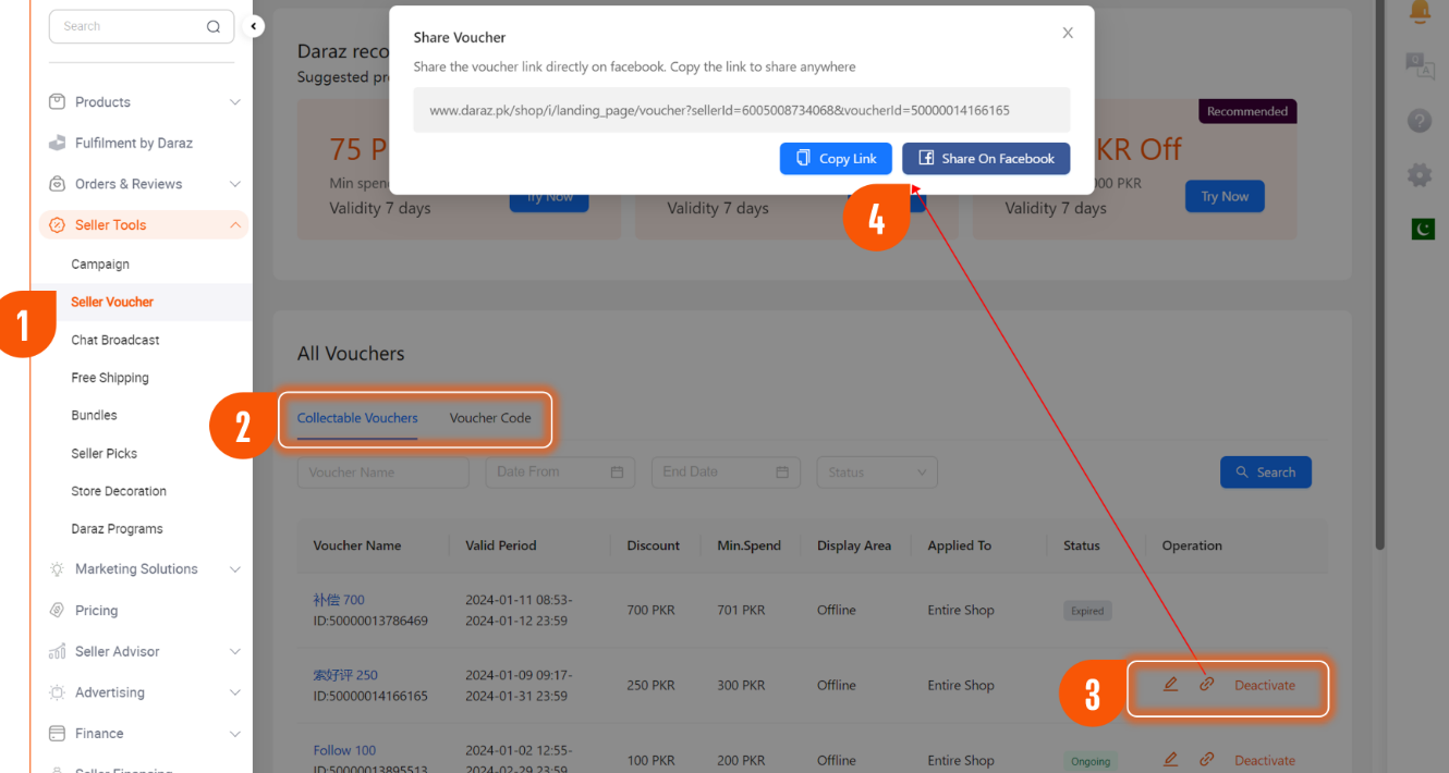 点击左侧导航栏Seller Tools > 下拉 进入Seller Voucher进入优惠券页面