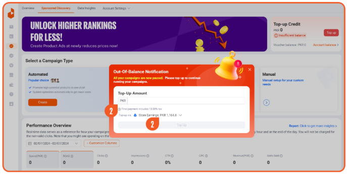 Tips:建议设置auto Top-Up自动充值,可避免此弹窗。