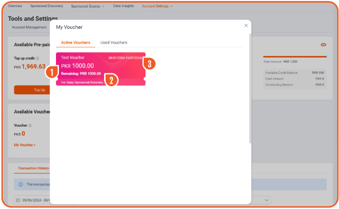 3 代金券有效期,代金券将按照有效期先后自动根据创建的所有Product Ads(New)的有效广告花费自动扣除。