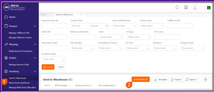1. 点击 Inventory>Send to Warehouse,进入创建IO页