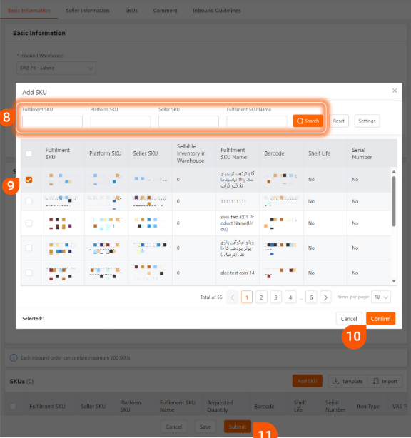 8. 单个添加SKU,在图示区域可搜索SKU。