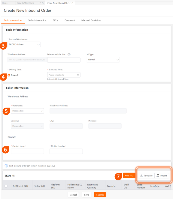 4. Delivery Type 默认 Dropoff,Estimate Time日期选择此票货预计到达Daraz当地仓库的日期