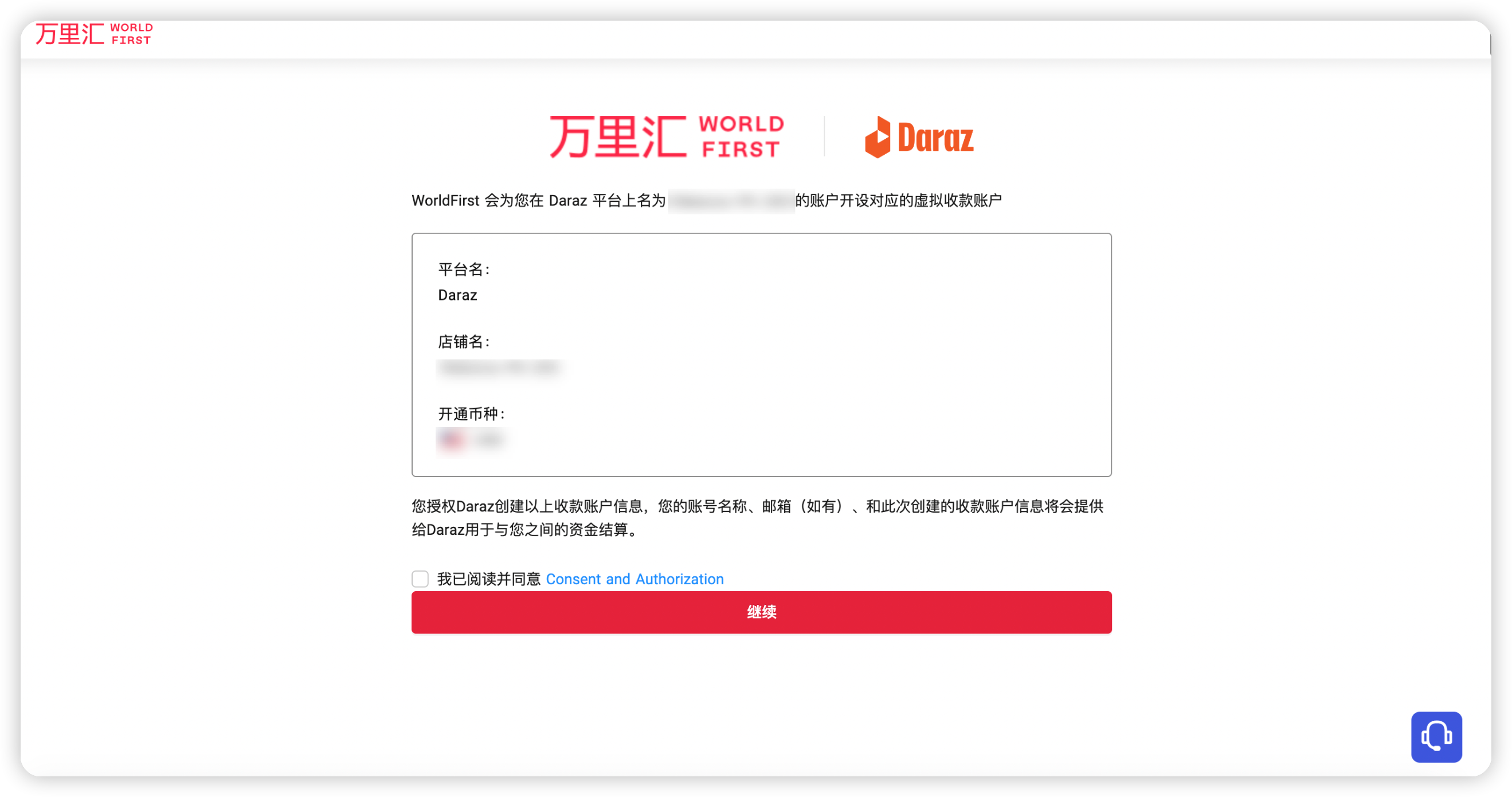 - 您可向Daraz平台获取店铺与万里汇绑定收款的绑定链接;