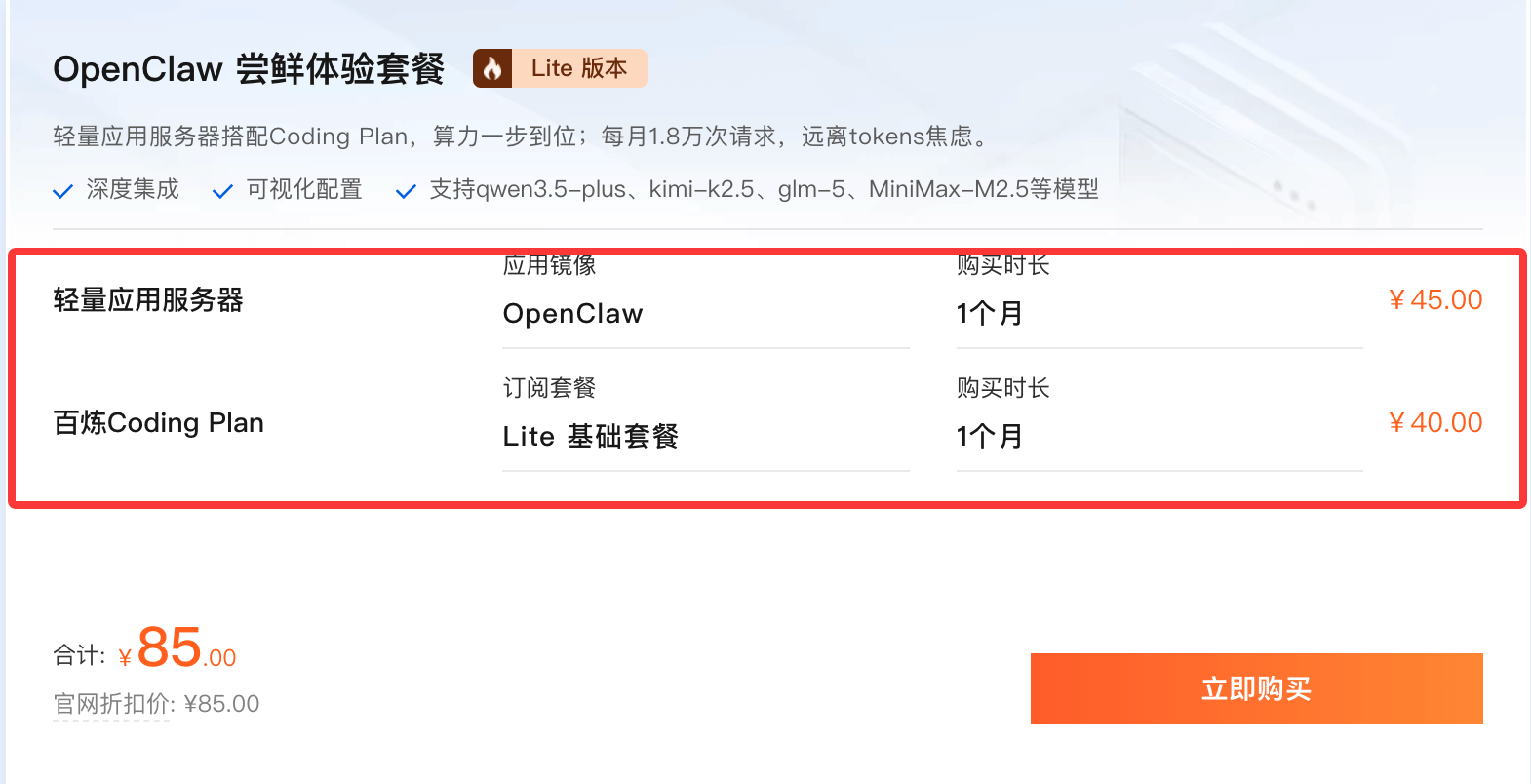 套餐已经包含了服务器与大模型: